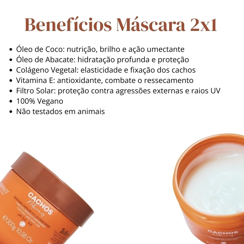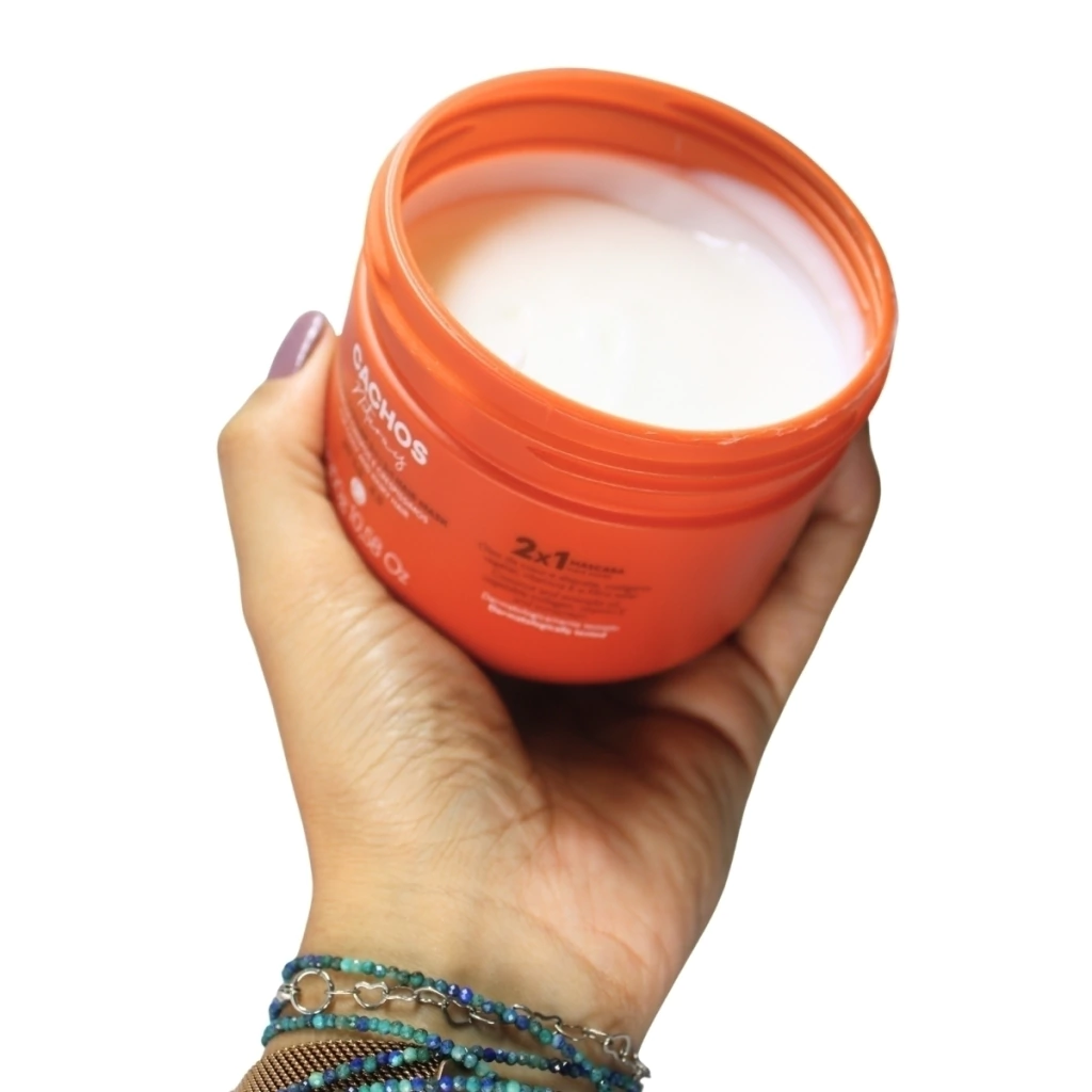 Com uma fórmula densa, nutritiva e multifuncional, ela pode ser usada tanto como máscara de tratamento (com enxágue) quanto como finalizador sem enxágue, oferecendo nutrição, proteção e ativação dos cachos com resultados visíveis já nas primeiras aplicações.