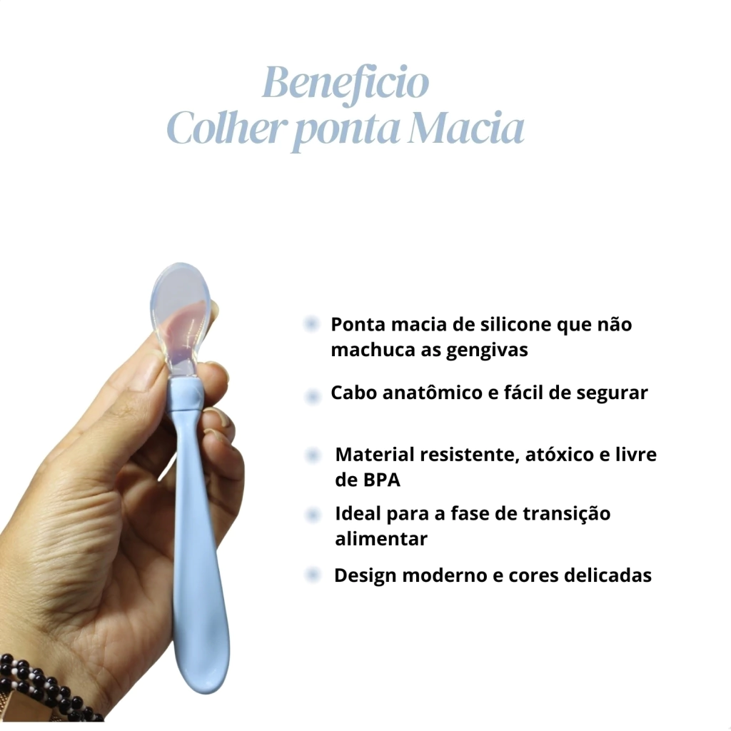 Com ponta de silicone supermacia, ela não machuca as gengivas sensíveis do bebê, tornando as primeiras refeições mais tranquilas.