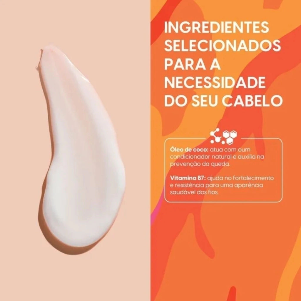 Ativos: Óleo de Coco, atua como um condicionador natural e auxilia na prevenção da quebra.