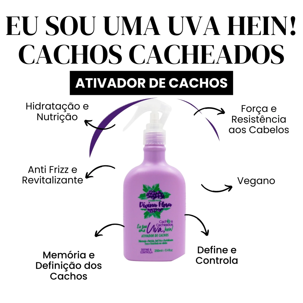 1 unidade Cachos Cacheados Eu Sou Uma Uva, Hein! Ativador de Cachos Divina Flora 250ml
