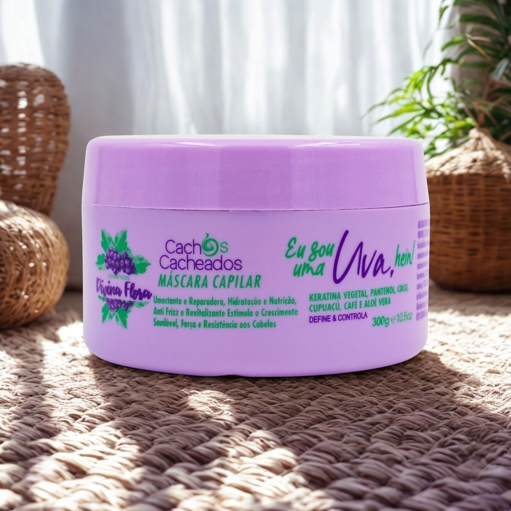 1 unidade Máscara Capilar Cachos Cacheados Eu Sou Uma Uva, Hein! Divina Flora 300g