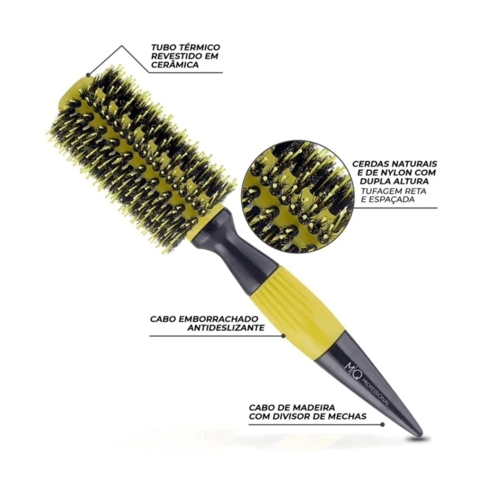 Com tecnologia Evolution Ceramic, deixamos a escova mais leve, proporcionando menor esforço no brushing. Suas cerdas em dupla altura de nylon e naturais, tracionam o cabelo e proporcionam brilho intenso. Corpo anatômico e antiderrapante com cabo separador de mechas.