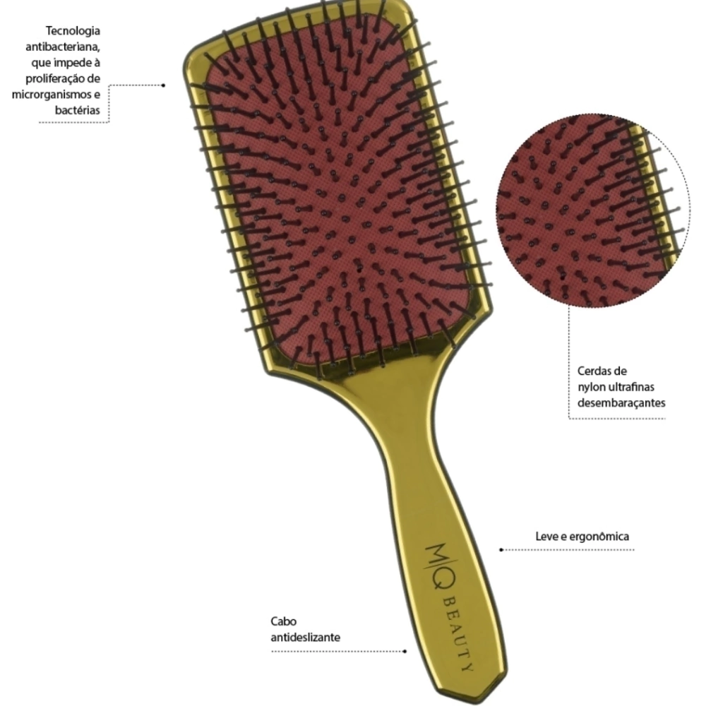 1 unidade Escova de Pentear Raquete Grande Almofadada Metallic Gold MQ