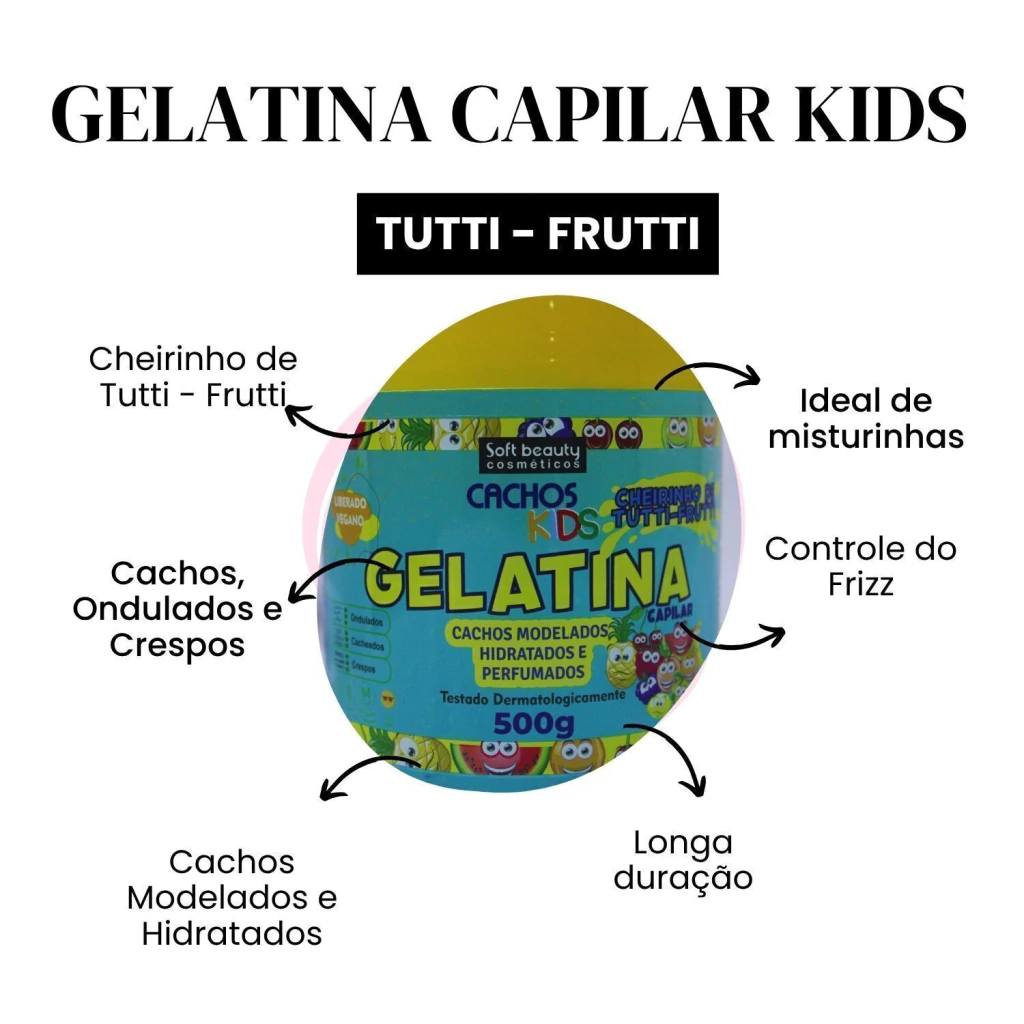 1 unidade Gelatina Capilar Cachos Kids Tutti-Frutti Soft Beauty 500g