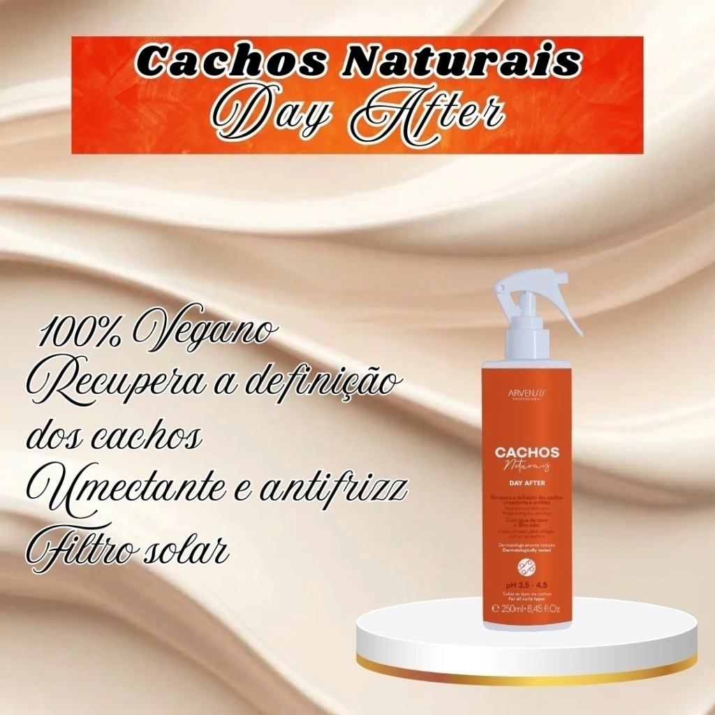 Os cabelos cacheados, muitas vezes, sofrem com o aspecto amassado, o frizz excessivo e a perda da definição dos cachos. Pensando nisso, a Arvensis desenvolveu o Day After, um spray com efeito memória que confere ultra definição aos cabelos, além de promover hidratação, elasticidade, controle do frizz, brilho e maciez. Com uma formulação enriquecida com filtro solar, protege os cabelos da ação nociva dos raios UV e da oxidação - que leva ao envelhecimento precoce dos fios. (250mL) – pH 3,5 – 4,5