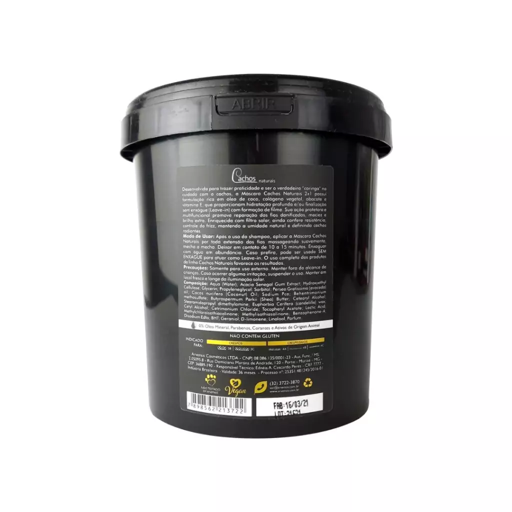 A Máscara Cachos Naturais 2x1 foi desenvolvida para atuar como hidratante e finalizador para cabelos crespos e crespíssimos. Elaborado através da perfeita combinação de Óleo de Coco, Colágeno Vegetal, Abacate e Vitamina E, a máscara proporciona inúmeros benefícios como nutrição avançada, reparação dos fios danificados, alta hidratação, maciez e brilho extra.