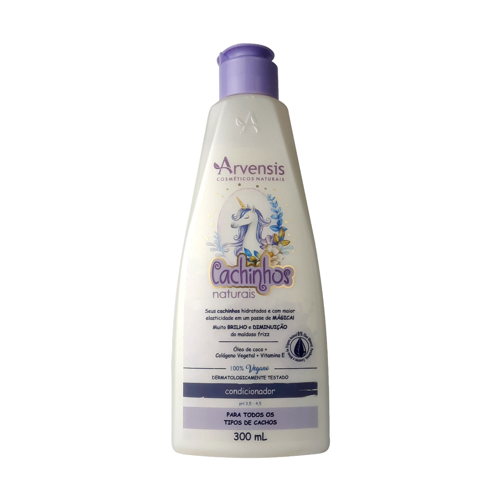 O Condicionador Cachinhos Naturais é ideal para o tratamento de todos os tipos de cabelos cacheados, proporcionando inúmeros benefícios como nutrição avançada, reparação dos fios danificados, condicionamento equilibrado, maciez, brilho e controle do frizz. (300mL) - pH 3,5 - 4,5 (LOW POO)