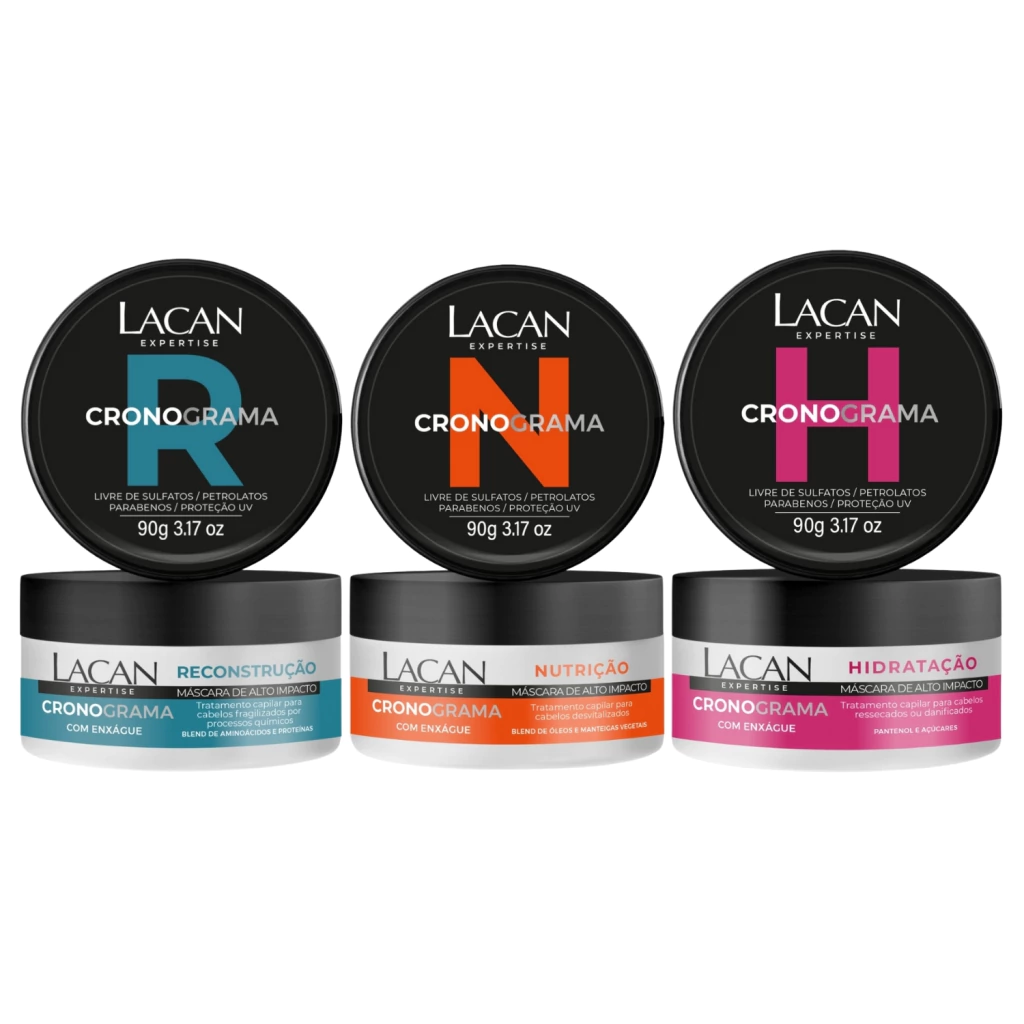 KIT MÁSCARAS CRONOGRAMA CAPILAR LACAN – NUTRIÇÃO, RECONSTRUÇÃO E HIDRATAÇÃO