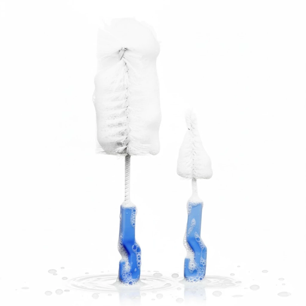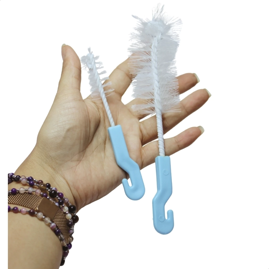 Kit Com Duas Escovas: Uma escova principal para mamadeiras e outra menor para bicos.