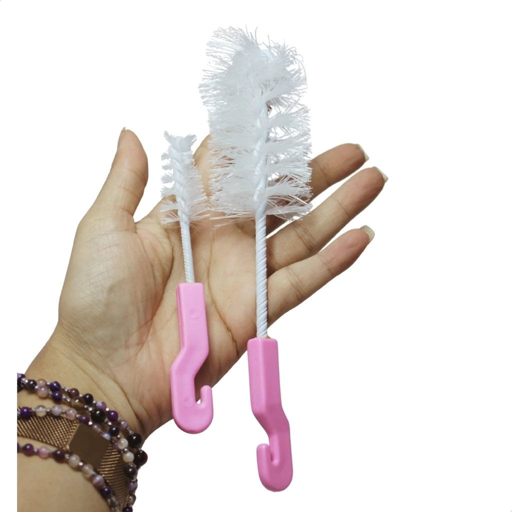 Kit Com Duas Escovas: Uma escova principal para mamadeiras e outra menor para bicos.