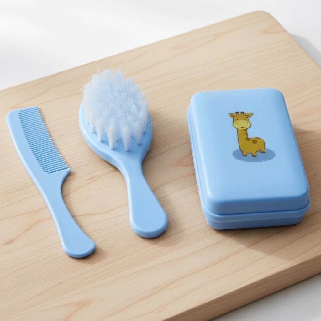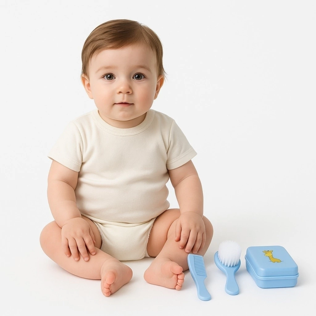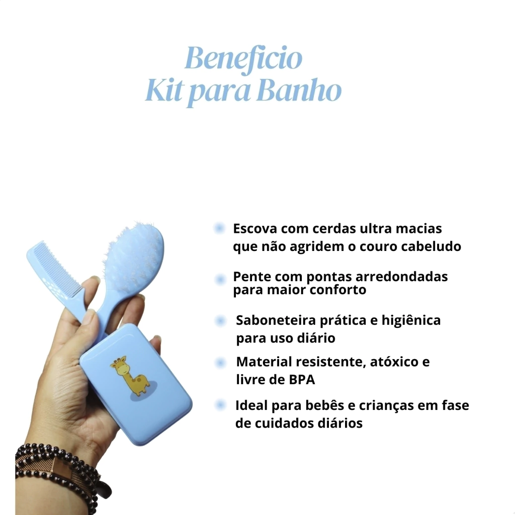 Bebês têm couro cabeludo delicado e pele sensível, por isso é essencial utilizar acessórios próprios para essa fase. O kit da Ninet traz materiais adequados, resistentes e livres de BPA, garantindo higiene e conforto no dia a dia.