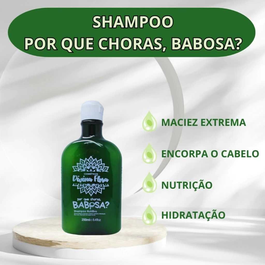 Descubra a fórmula revitalizante do Shampoo Nutritivo Por Que Choras Babosa da Divina Flora. Com 250 ml de puro cuidado, este shampoo é ideal para quem busca hidratação profunda e brilho natural para os cabelos.
