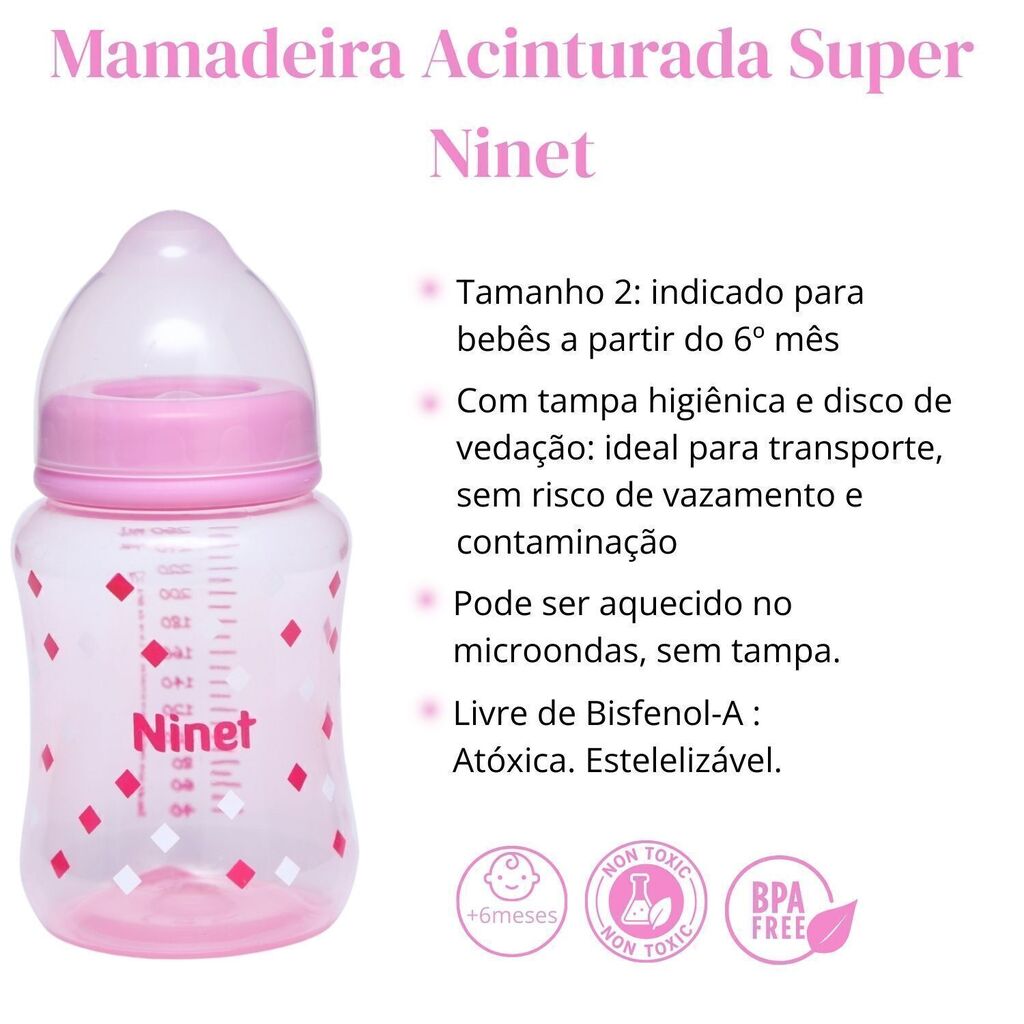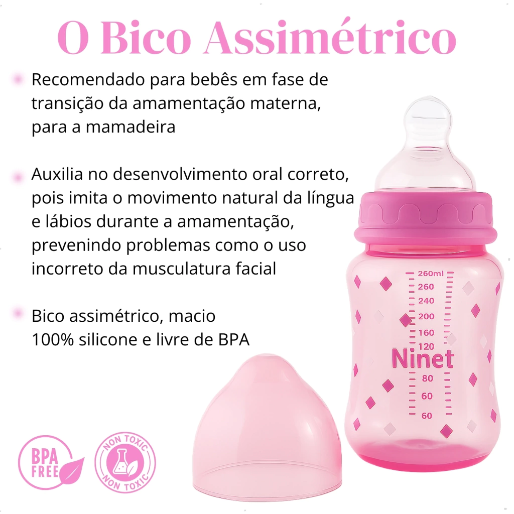 1 unidade Mamadeira Ninet Super Bico Assimétrico 260ml Rosa REF 793 “Gorduchinha”