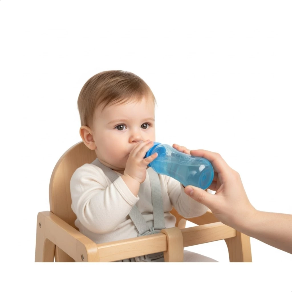 Esterilize a mamadeira e o bico em água fervente por 5 minutos antes da primeira utilização.