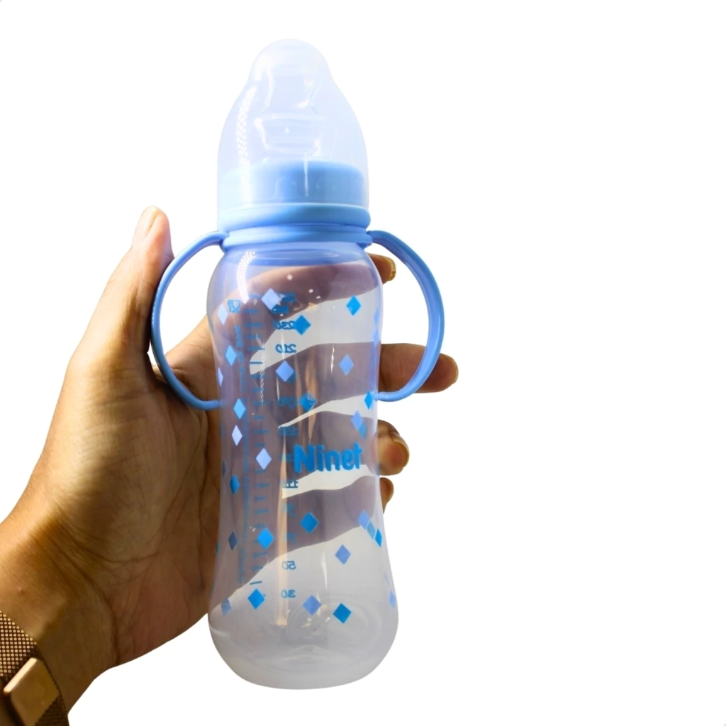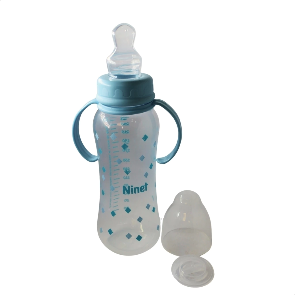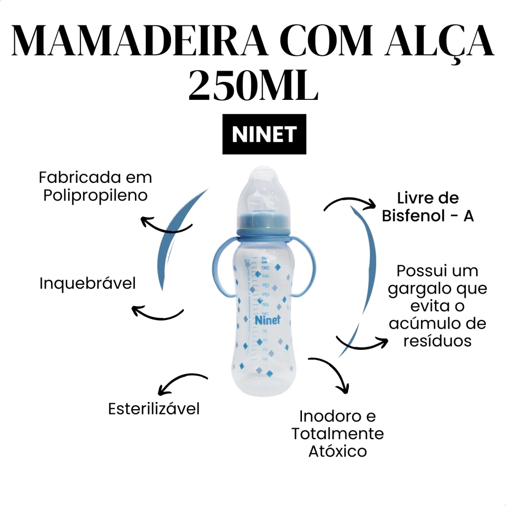 Adicione agora mesmo ao carrinho a Mamadeira Ninet Acinturada com Alça Azul REF 554!