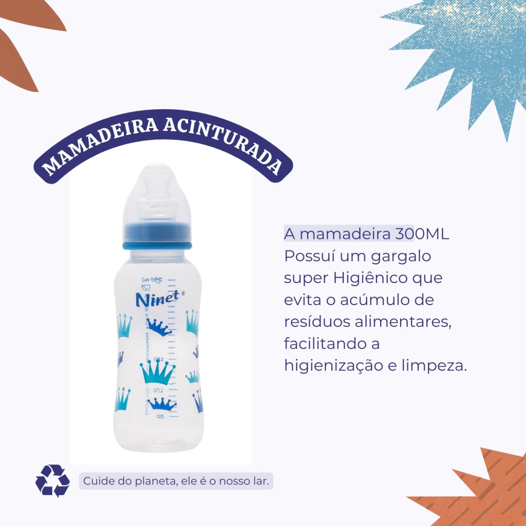 A Mamadeira Ninet Cristal Azul 300ml com Bico Assimétrico REF 561 é perfeita para proporcionar uma alimentação segura, confortável e prática para o bebê.