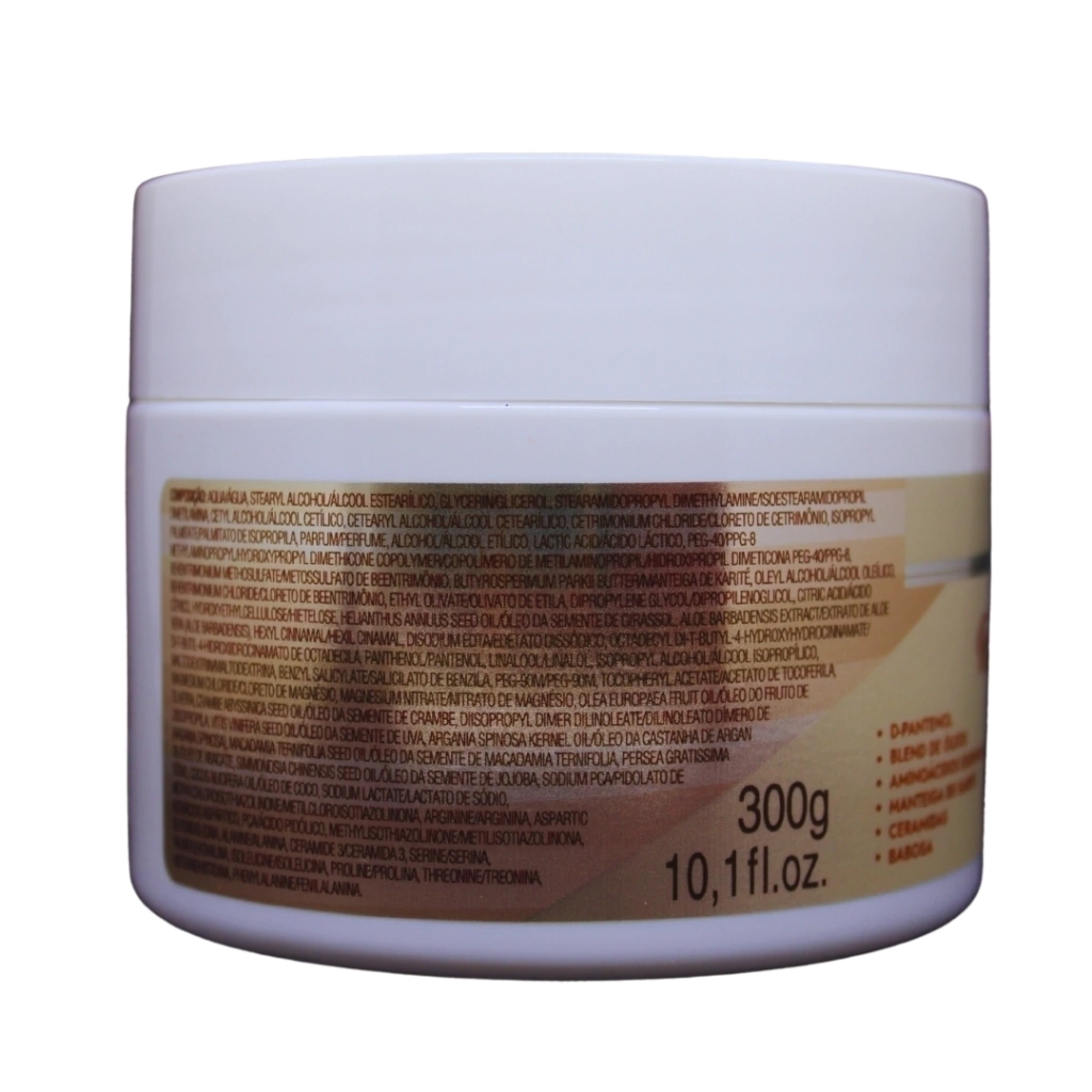 Benefícios: Alinhamento das cutículas, reparação dos fios, sedosidade, emoliência, penteabilidade, maciez e brilho verniz glamouroso.
