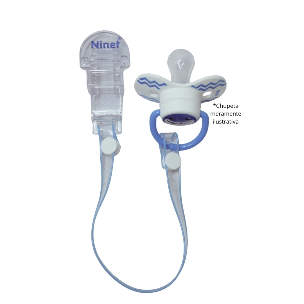 1 unidade de Prendedor de Chupeta Ninet com Trava em Tryton e Fita Azul de Silicone