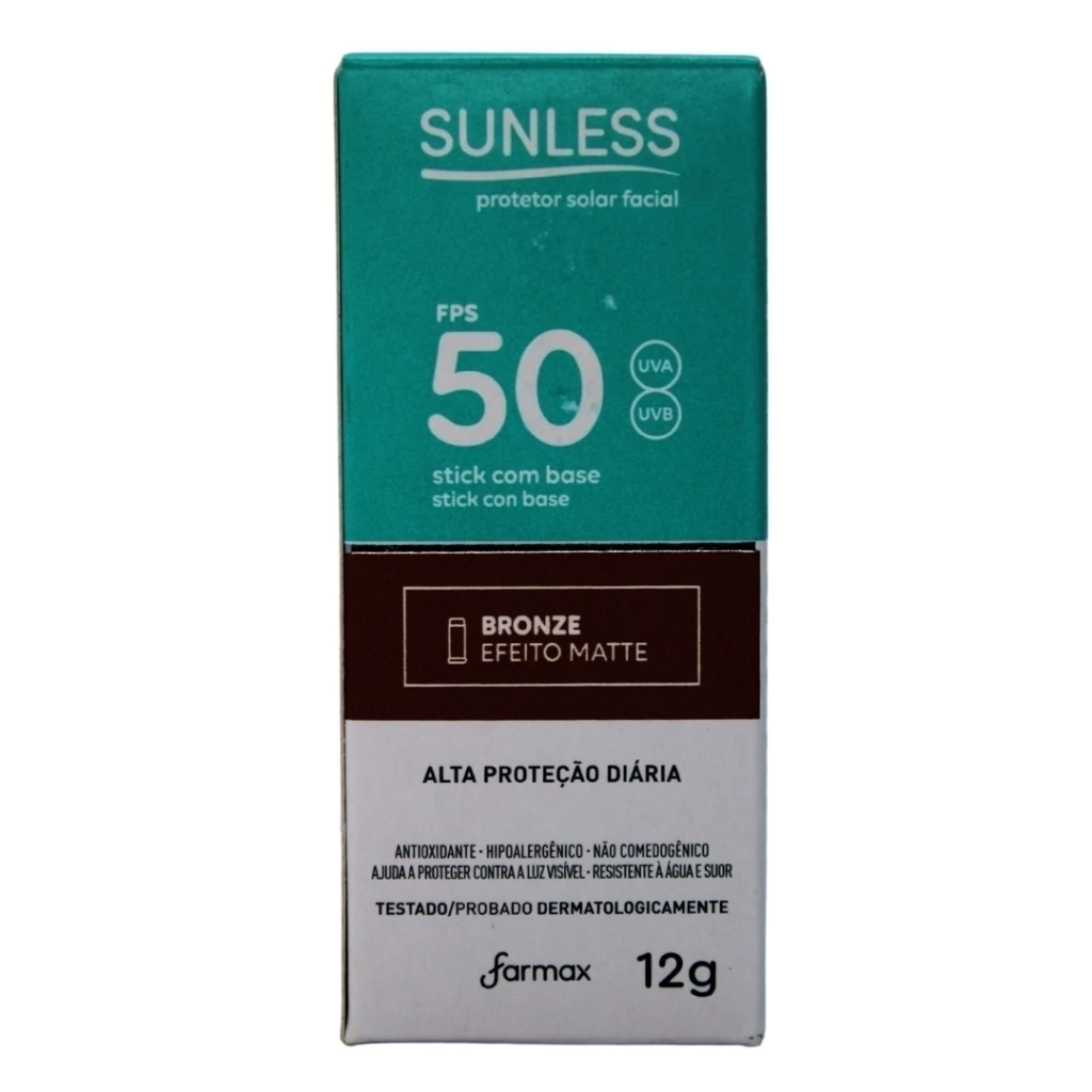 O Protetor Solar Stick com Base Bronze Sunless 12G apresenta FPS 50 e filtros fotoestáveis em sua composição, conferindo alta proteção contra os efeitos nocivos dos raios UVA e UVA. Indicado para pele muito sensível, sua fórmula é não comedogênica e hipoalergênica, além de ter a função de base com efeito matte que disfarça imperfeições proporcionando alta cobertura.