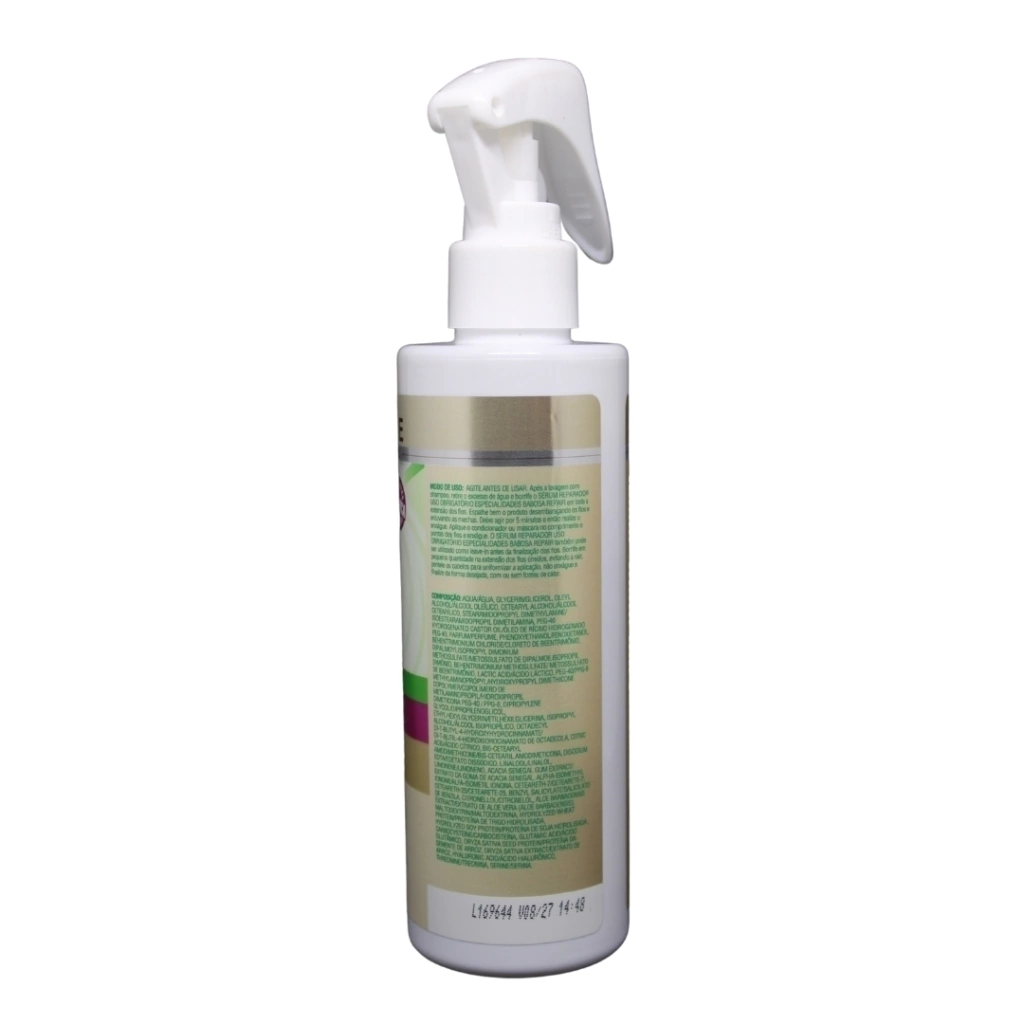 Modo de Uso: Agite antes de usar. Após a lavagem com shampoo, retire o excesso de água e borrife Sérum Reparador Uso Obrigatório Babosa Repair em toda a extensão dos fios. Espalhe bem o produto desembaraçando os fios e enluvando as mechas. Deixe agir por 5 minutos e então realize o enxágue. Aplique o condicionador ou máscara no comprimento e pontas dos fios e enxágue.