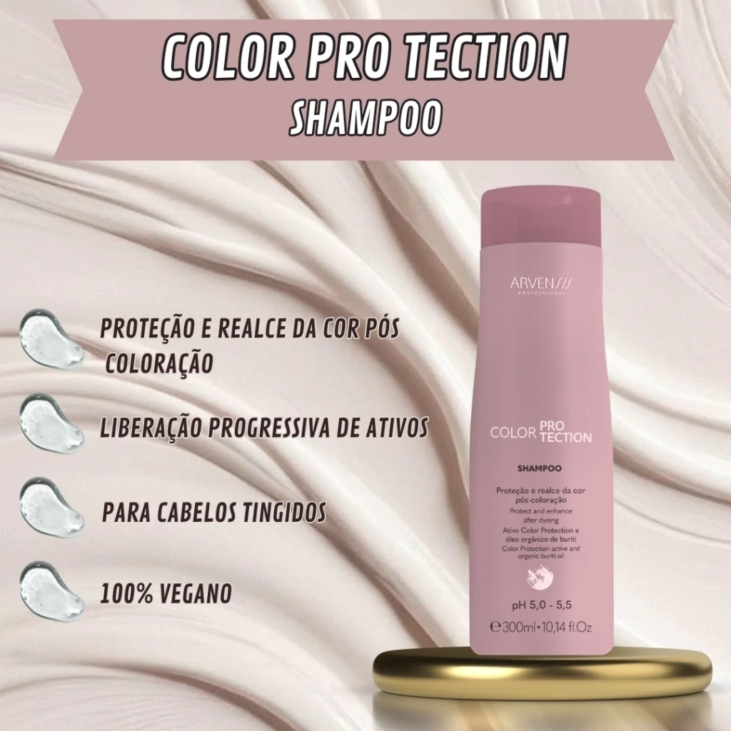 O Shampoo Color Protection limpa sem interferir na coloração dos cabelos, realçando a cor por mais tempo e aumentando a resistência à ruptura dos fios. (300mL) - Sem Sal - pH 5,0 - 5,5