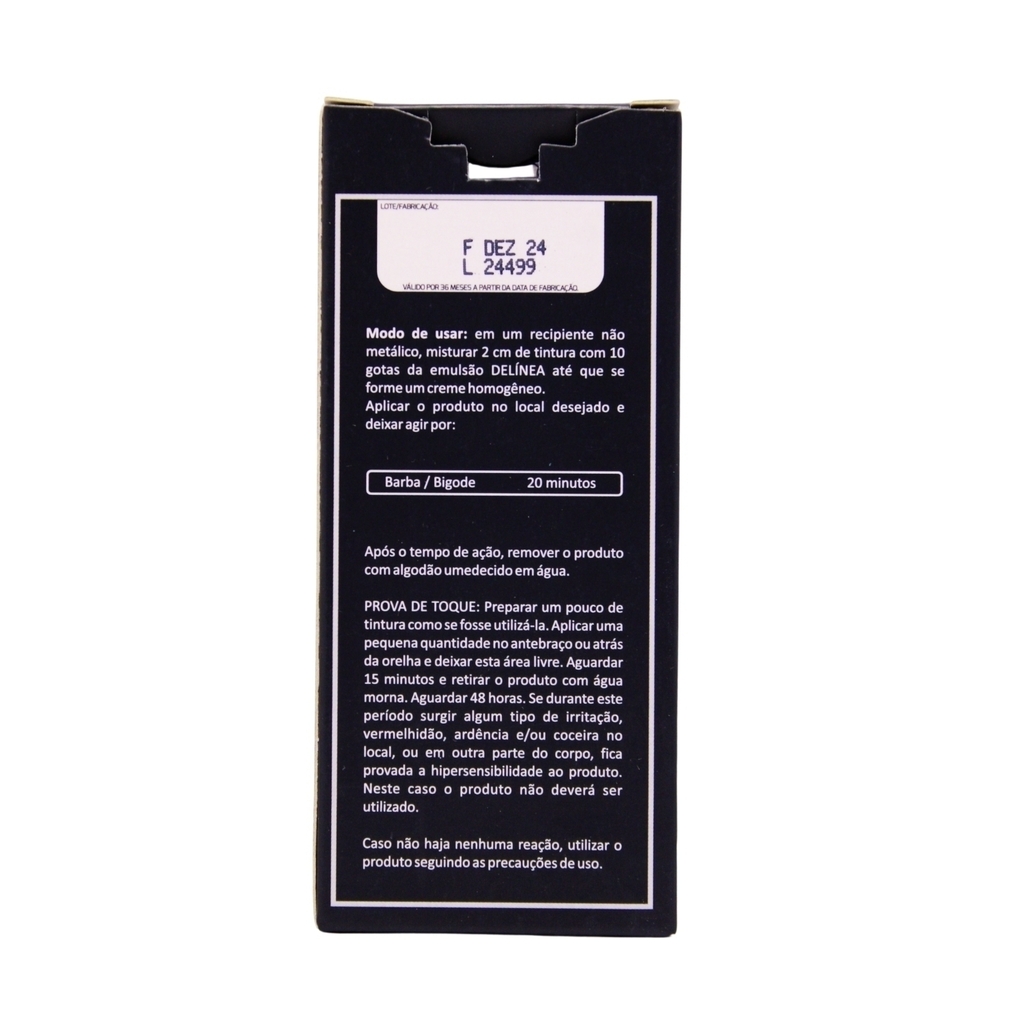 Em um recipiente não metálico, misturar 2cm de tintura com 10 gotas da emulsão DELÍNEA até que se forme um creme homogêneo. Aplicar no local desejado e deixar agir por 20 minutos.