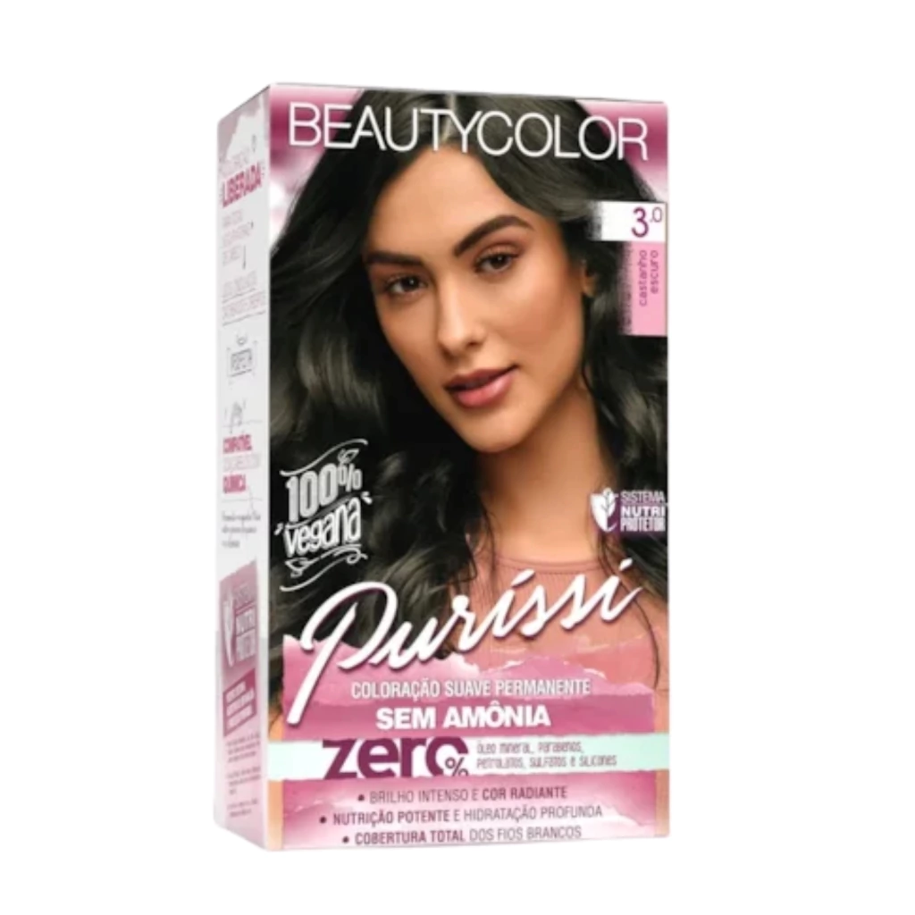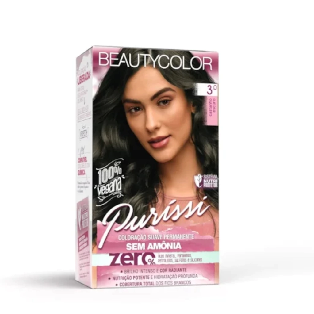1 Unidade de Kit Purissi Sem Amônia Coloração 3.0 Castanho Escuro Beautycolor